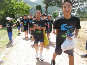 8月22日(木)に、姉妹校の和田小学校との交流を行いました。歓迎会で、和太鼓の演奏を聞いたり、校内ウォークラリーで交流を深めたりしました。午後からは牧場へ移動し、ニジマスつかみ、アイスクリーム作り体験をしました。普段なかなかできない経験をすることができ、子供たちはとても嬉しそうでした。二日目は、善光寺を見学しました。班ごとに分かれ、おいしいものを食べたり、おみやげを買ったりしました。子供たちにとって忘れられない思い出となりました。