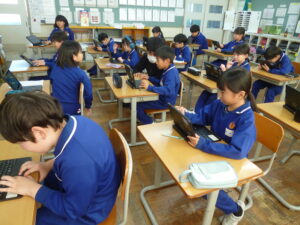 3年生 総合的な学習の時間 2024年11月25日 お知らせ 3年生は今まで調べてきた魚津のよさをタブレットを使ってまとめています。 今まで書きためてきたワークシートを確認したり、友達同士で教え合ったりして活動を進めています。