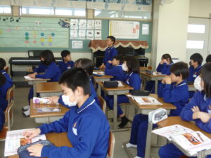 4年生 音楽科 2025年1月27日 お知らせ 4年生は音楽科で日本の音楽について学習をしています。 少し前には、琴の学習をしました。今日は、三味線と三線の演奏を聞き比べました。 2つの楽器の音の違いや自分が好きな方とその理由について発表しました。