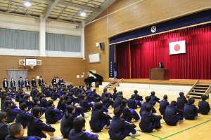 1月8日(木)、始業式を行いました。校長先生から「今年は午年です。行動力が高まって、これまで迷っていたことに挑戦するとよい結果につながる年です。」いう話がありました。周りにいる、たくさんの人とのつなりを大切にして、ラッキーなことを増やせる一年になることを願っています。