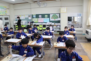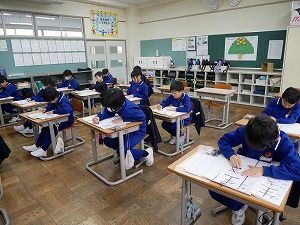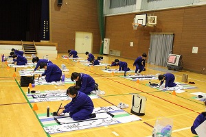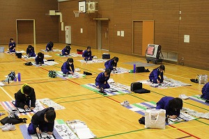 書初め大会では、どの学年も冬休みに練習した成果を発揮し、凛とした雰囲気の中、一文字一文字、心を込めて書いていました。